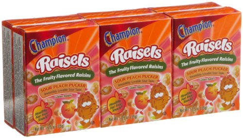 Champion Raisesl Sour Peach Raisins (1.25-Ounces), 6-Count Mini Boxes (Pack of 12) Review